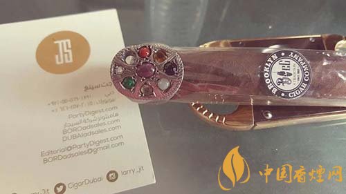 如果說(shuō)雪茄裹上金箔還能有助于煙灰的保持,同時(shí)冷卻煙灰。那么雪茄上鑲嵌寶石對(duì)抽雪茄本身就沒(méi)有任何一點(diǎn)用處了,除了炫耀也想不出其他價(jià)值了。
