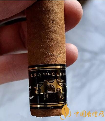 高希霸生肖雪茄并非特制的雪茄,使用的是醇化數(shù)年的量產(chǎn)雪茄,例如去年的高希霸狗年魔術師使用的是老標的高希霸魔術師,今年的高希霸羅布圖同樣使用醇化數(shù)年的雪茄。雪茄尺寸是50環(huán)徑,4.7英寸,今年的發(fā)行量是3000盒。雪茄有兩個煙標,一個是高希霸的標準煙標,一個是帶有中國生肖豬年標識的腳標,雪茄盒子也是特制的,黑色漆盒右下角有一個豬的標識。