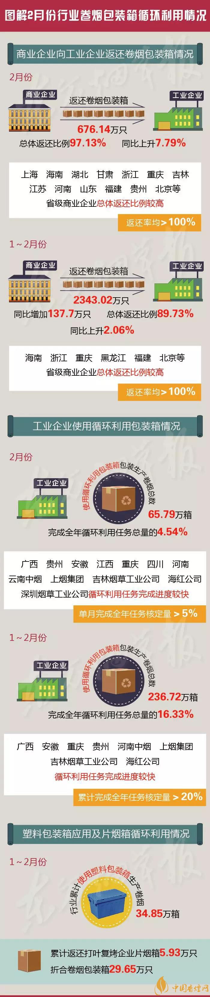 3月15日,國家煙草專賣局通報(bào)了2月份行業(yè)卷煙包裝箱循環(huán)利用情況。詳情如何?一圖速覽↓↓↓(圖來源于東方煙草報(bào))