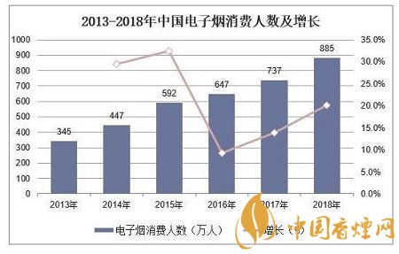 據(jù)統(tǒng)計(jì),2018年中國(guó)新型煙草消費(fèi)者數(shù)量約為885萬(wàn)人,同比增長(zhǎng)20.1%。