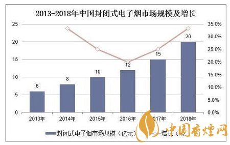 據(jù)統(tǒng)計(jì),2018年中國(guó)封閉式電子煙市場(chǎng)規(guī)模約20億元,同比增長(zhǎng)33.3%。