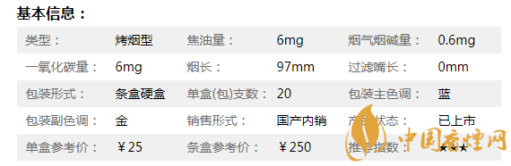 包裝色調(diào):藍(lán)(金) 小盒條碼:6901028115377 條包條碼:6901028115384 單包支數(shù):20