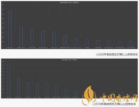 通過以上兩組數(shù)據(jù)對比可以發(fā)現(xiàn),2019年超高細支首次邁入萬箱時代,同時出現(xiàn)2個規(guī)格。