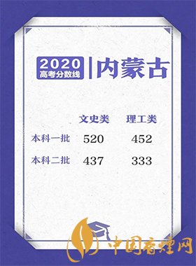 本科一批:理工類(lèi)為452分,文史類(lèi)為520分;本科二批:理工類(lèi)為333分,文史類(lèi)為437分。