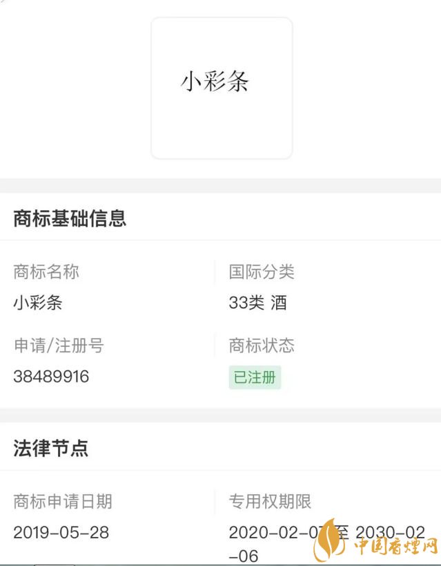 據(jù)了解,汽化酒這個(gè)項(xiàng)目,狼煙天下在2019年5月就開(kāi)始立項(xiàng)了。還特意在33酒類(lèi)申請(qǐng)了商標(biāo),商標(biāo)名字也叫做“小彩條”。