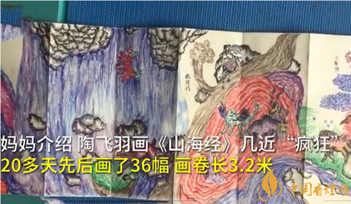 近日,重慶一名10歲的小男孩火了。重慶10歲的陶飛羽小朋友20多天先后畫了36幅《山海經(jīng)》,畫卷長(zhǎng)達(dá)3.2米,陶飛羽還嘗試?yán)L神話故事。下面讓我們一起來(lái)看看這個(gè)《山海經(jīng)》作品吧!