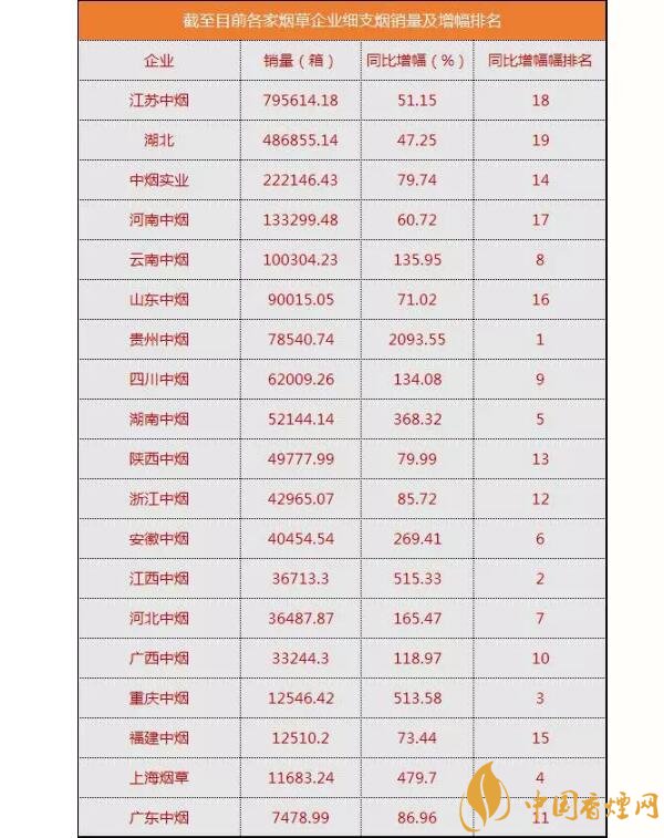 表格中,細(xì)支煙銷售量排名銷量總量位居首位的依然是江蘇中煙。雖然,今年各地反映炫赫門限量供應(yīng),但依然沒有撼動(dòng)蘇產(chǎn)細(xì)支第一的地位。最新統(tǒng)計(jì)消息稱,南京(炫赫門)截至11月底的銷量早已突破了55萬箱,這樣的炫赫門真的很贊!增幅最為明顯是貴州中煙,78540.74箱銷量。其中功不可沒的當(dāng)初貴煙(跨越)。這款去年上市的新品,今年1—11月份的銷量統(tǒng)計(jì),已經(jīng)超過了5.8萬箱,成為了國(guó)內(nèi)細(xì)支爆珠的第一大規(guī)格。#p#副標(biāo)題#e#