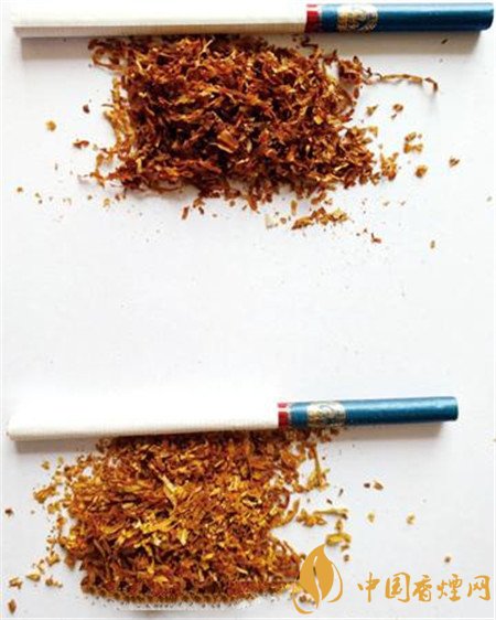 煙絲:真品卷煙的煙絲由葉絲組成,煙絲切絲均勻,光澤油潤性好,碎末少,顏色為檸檬黃;假冒卷煙的煙絲由碎梗、碎絲組成,工藝粗糙,煙絲寬度不均勻、多為碎末,經(jīng)硫磺熏制后呈黃白色。由于南京炫赫門煙支細長、煙嘴微甜,所以部分煙民將其視作女煙。