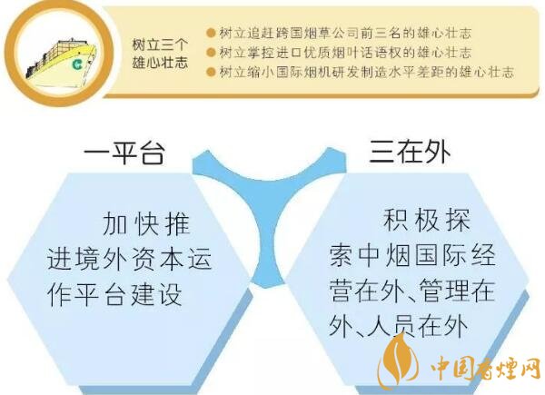 2017年全國(guó)煙草工作會(huì)議上,凌成興局長(zhǎng)明確提出“深化‘走出去’發(fā)展配套體系改革,加快推進(jìn)境外資本運(yùn)作平臺(tái)建設(shè),積極探索中煙國(guó)際實(shí)現(xiàn)經(jīng)營(yíng)在外、管理在外、人員在外的轉(zhuǎn)型方案”。目前,“一平臺(tái)三在外”,已經(jīng)上升為行業(yè)國(guó)際市場(chǎng)拓展的戰(zhàn)略性舉措,是行業(yè)當(dāng)前和今后一個(gè)時(shí)期內(nèi)推進(jìn)拓展體制改革、機(jī)制創(chuàng)新、業(yè)務(wù)發(fā)展的重要著力點(diǎn)。