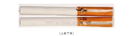 真煙煙支過(guò)濾嘴長(zhǎng)度為24mm;假煙煙支過(guò)濾嘴較短長(zhǎng)度約為18mm,與真品煙支存在明顯差異。