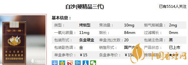 以上內(nèi)容是由香煙網(wǎng)小編為大家介紹的關(guān)于,白沙三代多少錢(qián)一包以及白沙煙精品三代價(jià)格圖片相關(guān)信息,想要了解更多有關(guān)信息詳情請(qǐng)點(diǎn)擊:休閑利群多少錢(qián)一包。
