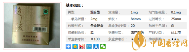 超低焦油低危害卷煙代表性產(chǎn)品。“中南海(1mg)”集中草藥添加、綜合降焦、納米1+1以及復(fù)合減害技術(shù)于一身,使焦油量降至1毫克/支,卷煙危害指數(shù)低至3。下面就由香煙網(wǎng)小編帶大家來(lái)了解一下中南海超1流的相關(guān)信息。