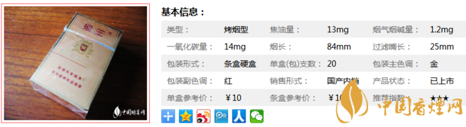 這款煙是猴王里面比較受歡迎的品種,銷量好,但是磨砂猴王好像能買到的地方不多。猴王磨砂香煙在10元檔標(biāo)準(zhǔn)煙草中,算是比較王牌的性價(jià)比了。經(jīng)香煙網(wǎng)小編市場(chǎng)調(diào)查價(jià)格為10元/包。