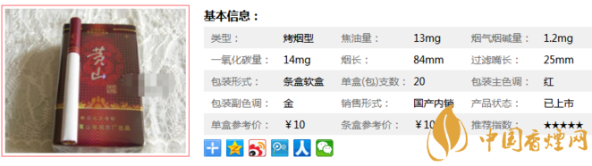 黃山軟紅香煙,焦油量較高,煙氣較沖鼻,濃厚中飽滿協(xié)調(diào)、更具層次感。適合老煙民品吸,剛?cè)腴T的煙友,可能會(huì)不習(xí)慣它的味道。下面我們一起來(lái)看看它的參數(shù)信息:焦油量13mg,煙堿量1.2mg,一氧化碳量14mg。