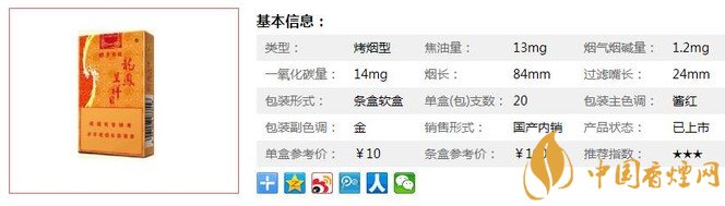 | 類(lèi)型 :烤煙型 | 焦油量 :13mg | 煙氣煙堿量 :1.2mg | 一氧化碳量 :14mg |