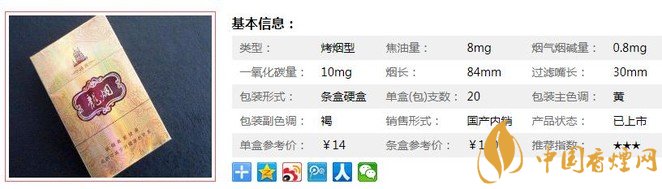 | 類(lèi)型 :烤煙型 | 焦油量 :10mg | 煙氣煙堿量 :1.1mg | 一氧化碳量 :12mg |