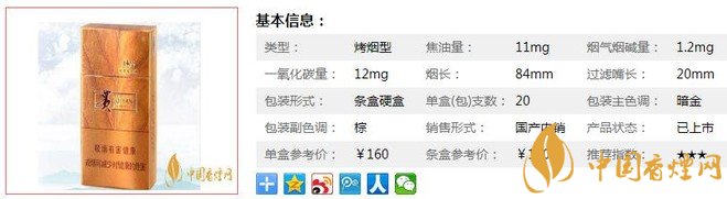 | 類型 :烤煙型 | 焦油量 :11mg | 煙氣煙堿量 :1.2mg | 一氧化碳量 :12mg |