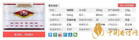 | 類型 :烤煙型 | 焦油量 :10mg | 煙氣煙堿量 :1mg | 一氧化碳量 :11mg |