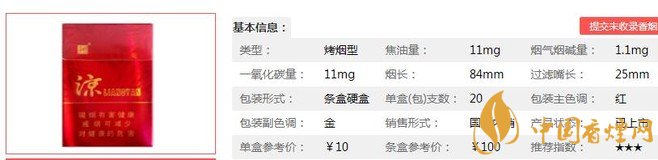 | 類(lèi)型 :烤煙型 | 焦油量 :11mg | 煙氣煙堿量 :1.1mg | 一氧化碳量 :11mg |