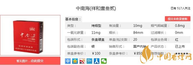 以上便是由香煙網(wǎng)小編為大家介紹的關(guān)于中南海祥和壹叁貳價(jià)格及參數(shù) 致力于改善喉部舒適性的相關(guān)信息,想要了解更多有關(guān)內(nèi)容請(qǐng)點(diǎn)擊:中南海5mg細(xì)支價(jià)格表一覽 混合型細(xì)支煙的引領(lǐng)者