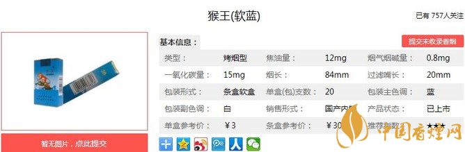 猴王軟藍(lán)價(jià)格及參數(shù) 陜西低價(jià)煙中的佼佼者
