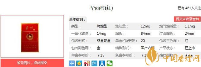 華西村紅傳承了蘇系香煙的特點(diǎn),以煙氣細(xì)膩柔和中,充滿著平和的醇厚感,征服了大量和煙客。在中國(guó)華西村香煙價(jià)格表圖中它們銷量好,口碑也非常不錯(cuò)。經(jīng)香煙網(wǎng)小編市場(chǎng)調(diào)查華西村紅售價(jià)為15元/包。