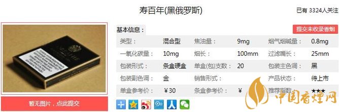 以上便是由香煙網小編為大家介紹的關于壽百年黑俄羅斯價格一覽 壽百年黑俄羅斯獨家口感分析的相關信息,想要了解更多有關內容請點擊:雪蓮藍精品價格一覽 雪蓮藍精品香氣自然余味醇厚