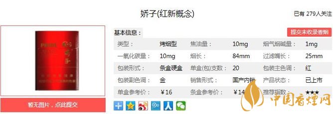 以上便是由香煙網(wǎng)小編為大家介紹的關(guān)于嬌子紅新概念價(jià)格及參數(shù) 首次采用“微笑香線”設(shè)計(jì)的相關(guān)信息,想要了解更多有關(guān)內(nèi)容請點(diǎn)擊:三五冰炫細(xì)支獨(dú)家口感測評 555品牌首款爆珠細(xì)支香煙