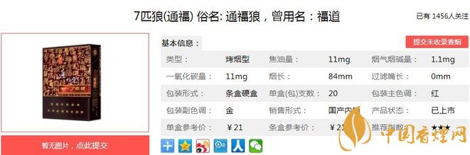 在通系列中,通福系中的“7匹狼(通福)”是從“七匹狼(福道)”轉(zhuǎn)換而來的通系列成員,其以“添香通福,五福齊享”為價值訴求,在融入“通系列”之后仍然保持著與七匹狼(福道)一脈相承的風格調(diào)性。煙香優(yōu)雅、豐富、飄逸;煙氣細膩、流暢、綿長;余味津甜、舒適。經(jīng)香煙網(wǎng)小編市場調(diào)查七匹狼通福售價為21元/包。