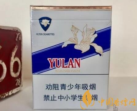 正面來看,頂部可以看到一條金色的邊框,下方是一條鐳射線條,在左上角可看到藍色為底的類似鉆石logo的圖案,上面有一朵白色的玉蘭花,圖案下方寫著“過濾嘴香煙”,中間是藍色為底的斜條長方形樣式,上方也是一朵白色玉蘭花和“玉蘭香煙”四個字,這算是很經(jīng)典的玉蘭香煙logo圖案了,最下方是警示標(biāo)語。背面跟正面差不多,整體包裝富有很濃郁的復(fù)古海報的風(fēng)格。