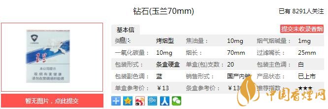 以自主煙葉基地優(yōu)質(zhì)煙葉為基礎(chǔ),優(yōu)選津巴布韋,巴西等優(yōu)質(zhì)煙葉,充分運用小葉組配方技術(shù),使產(chǎn)品煙香純正,口感舒適,香氣醇和飽滿,煙氣細膩柔順,口感舒適,余味干凈,安全環(huán)保。經(jīng)香煙網(wǎng)小編市場調(diào)查鉆石玉蘭70mm售價為13元/包。