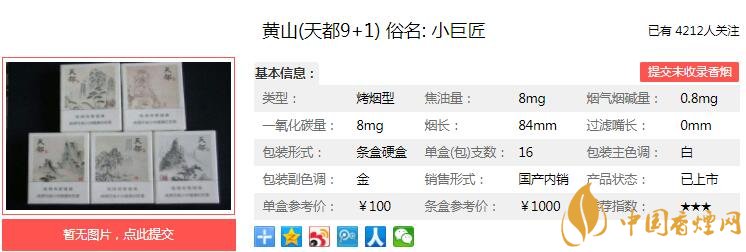以上便是由香煙網(wǎng)小編為大家介紹的關(guān)于黃山(天都9+1)多少錢一包 天都巨匠的普世之作的相關(guān)信息,想要了解更多有關(guān)內(nèi)容請(qǐng)點(diǎn)擊:真龍燃情時(shí)光多少錢一包 業(yè)內(nèi)首創(chuàng)包裝水銀鏡面效果