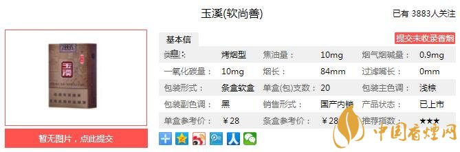 尚善玉溪秉承玉溪家族醇厚清香的經(jīng)典本味,精選云煙之鄉(xiāng)優(yōu)質(zhì)煙葉,煙葉配伍豐富而協(xié)調(diào),呈現(xiàn)溫潤醇香的細(xì)膩口感,軟包硬化的獨特包裝,完美保護(hù)每支尚善玉溪的卓越享受。經(jīng)香煙網(wǎng)小編市場調(diào)查玉溪軟尚善售價為28元/包。