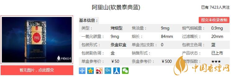 阿里山煙近幾年在國內(nèi)還是比較常見的,這款阿里山(軟景泰典藍(lán))屬于這個(gè)系列的高端產(chǎn)品,嚴(yán)格遵循全手工選葉,不添加其他填充物,用物理方法提取純天然植物香料,不添加任何化學(xué)合成香。經(jīng)香煙網(wǎng)小編市場調(diào)查阿里山軟景泰典藍(lán)售價(jià)為50元/包。