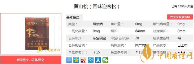 以上便是香煙網(wǎng)小編為大家介紹的關(guān)于黃山松香煙多少錢 黃山松回味迎客松價格及圖片分析的相關(guān)信息,大家看完之后是不是對于黃山松(回味迎客松)的相關(guān)信息更加了解呢,想要了解更多內(nèi)容歡迎點擊:黃山松回味迎客松 機制雪茄式卷煙口感測評