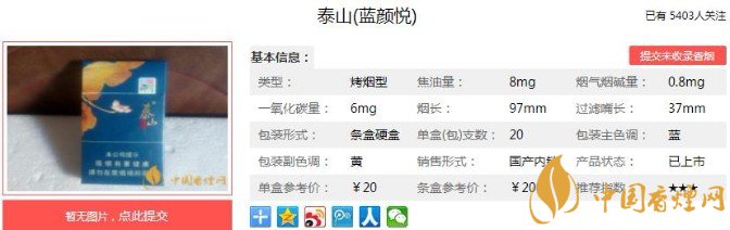 以上便是香煙網(wǎng)小編為大家介紹的關(guān)于泰山藍(lán)顏悅多少錢(qián) 泰山藍(lán)顏悅價(jià)格及口感品吸的相關(guān)信息,看完之后大家是不是對(duì)于泰山(藍(lán)顏悅)這款香煙的相關(guān)信息更加了解呢。大家還想查詢(xún)更多的相關(guān)內(nèi)容歡迎點(diǎn)擊:泰山儒風(fēng)多少錢(qián) 泰山儒風(fēng)最新口感評(píng)測(cè)