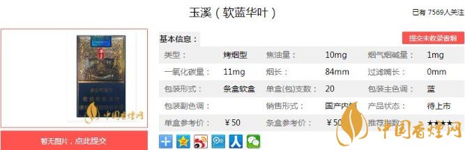 | 類型 :烤煙型 | 焦油量 :10mg | 煙氣煙堿量 :1mg | 一氧化碳量 :11mg |