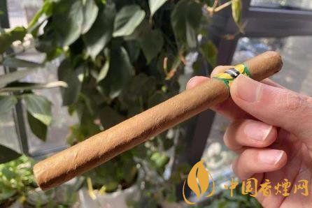 雪茄入手,手感緊實(shí)致密,纖細(xì)修長(zhǎng)的茄身彰顯其精致,執(zhí)于鼻間,茄香撲鼻,單聞茄香便陷入沉醉,非常過癮。量了下煙支尺寸,長(zhǎng)度 150mm,直徑 14mm,環(huán)徑 44mm,焦油量:中,售價(jià)為80元/盒。