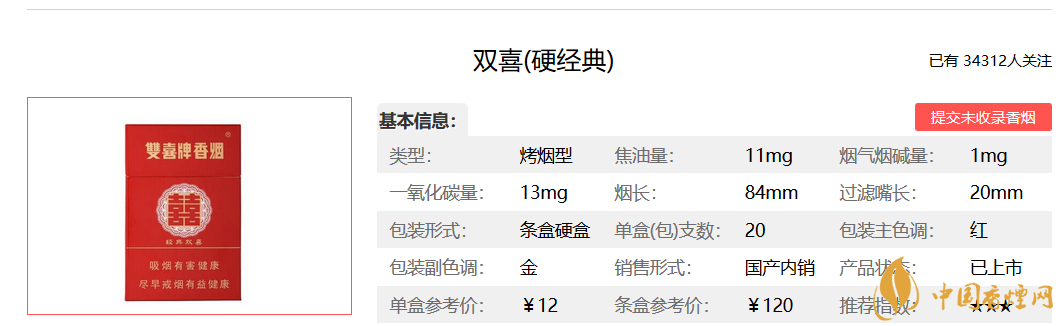 雙喜硬經(jīng)典,口感較濃厚,余味酸甜,煙勁適中,略刺喉,但是人為香精調(diào)香太多,煙草本香基本體會(huì)不到,煙味層次感欠佳。比軟包經(jīng)典醇香的香氣味要濃厚,人工香氣也比較大,但是在余味上與軟包差別不大。在紅雙喜經(jīng)典香煙價(jià)格表圖中也是比較有特色的。