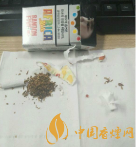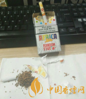 這款煙的外包裝除了有惡心的忠告圖意外,還是比較漂亮的。煙盒下方標(biāo)有“AFRICARANDOMFIVE”煙盒上方是忠告圖吸煙有害健康的一些標(biāo)語(yǔ)。