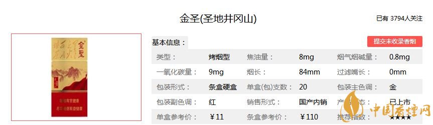 以上就是香煙網(wǎng)小編為大家整理介紹的金圣圣地井岡山香煙的價(jià)格及圖片,希望為煙民們提供幫助。小編在此提醒大家,吸煙有害健康,希望大家為了自己的身體,能夠盡快戒煙。想查詢更多香煙內(nèi)容,請關(guān)注香煙網(wǎng)。
