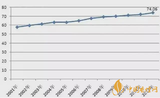 根據(jù)前瞻產(chǎn)業(yè)研究院發(fā)布的《2013-2017年中國(guó)煙草制品行業(yè)產(chǎn)銷需求與投資預(yù)測(cè)分析報(bào)告》,2001-2012年,中國(guó)煙草制品行業(yè)毛利率維持在57%以上的較高水平,且呈現(xiàn)逐年上升的態(tài)勢(shì),到2012年行業(yè)的毛利率達(dá)到了74.06%。