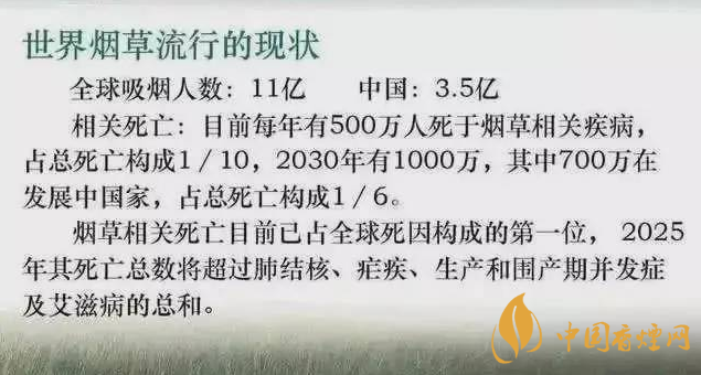 我國(guó)是世界上煙草生產(chǎn)和消費(fèi)最大的國(guó)家,吸煙率在38%以上。有資料統(tǒng)計(jì),世界上的吸煙人數(shù)正在下降,而與此同時(shí),中國(guó)的煙民隊(duì)伍卻在不斷擴(kuò)大:我國(guó)現(xiàn)有煙民3.5億,比美國(guó)的人口總數(shù)還多。