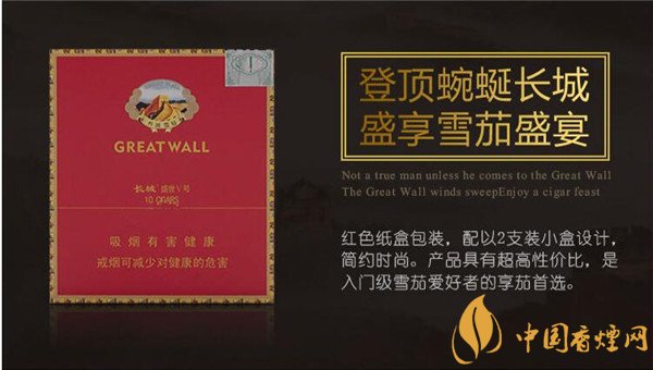 長城雪茄煙盛世5號包裝非常的亮眼,主打色為中國紅和傳統(tǒng)的帝王黃色相結(jié)合,整體看上去非常的喜慶,口味是最經(jīng)典的雪茄本香,這款長城雪茄煙在裝配上進(jìn)行了大改革。長城雪茄煙(盛世5號)多少錢,接下來香煙網(wǎng)小編將為大家介紹長城雪茄煙價格表和圖片。