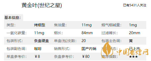 黃金葉煙是中國著名品牌,有天葉等高端香煙。當然也有世紀之星低端市場的產品,這種香煙很受歡迎。它的外表很華麗,完全想不到是一款8元錢的香煙,今天小編整理了黃金葉世紀之星多少錢一盒的相關信息,下面跟著小編來一起了解一下吧。