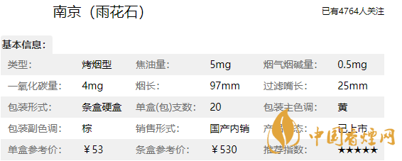 作為南京新一代高端細支煙代表產(chǎn)品,南京雨花石香煙價格零售為500元/條。有的地區(qū)南京雨花石香煙價格甚至已經(jīng)成漲為零售價高達800元/條。南京雨花石和南京九五至尊的味道差不多,由于南京雨花石的細支設(shè)計,入口飽和感稍顯不足,對于老煙槍來說煙勁稍差點。