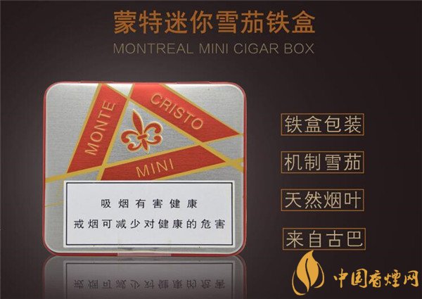 蒙特迷你雪茄鐵盒裝采用兩色系包裝,一種紅色鐵盒裝,象征著吉祥與熱情,一種是藍(lán)色鐵盒裝,象征著純凈與永恒。它是一款機(jī)制型的雪茄煙,它精致小巧的煙身,加入了特制的香料成分,它嬌小的茄身散發(fā)出一種不一樣的新風(fēng)味。那么這款古巴雪茄多少錢(qián)一盒呢,下面就由香煙網(wǎng)小編來(lái)為大家介紹一下蒙特迷你雪茄10支價(jià)格表圖。