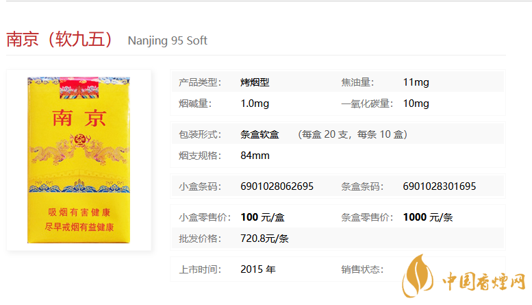 以上就是小編收集到的2021年50元以上的南京香煙有哪些,50元以上南京香煙詳情一覽的相關(guān)信息,以上數(shù)據(jù)均來源于網(wǎng)絡(luò),希望能對你有所幫助,解答你的疑惑,更多相關(guān)信息請關(guān)注香煙網(wǎng)。