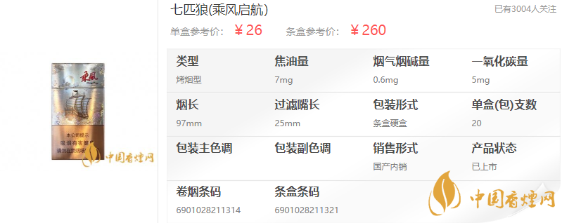 七匹狼·乘風(fēng)啟航香煙,有更多人直接叫它“乘風(fēng)”,由福建中煙出品,據(jù)香煙網(wǎng)小編了解到,七匹狼乘風(fēng)啟航香煙參考價:26元/包。
