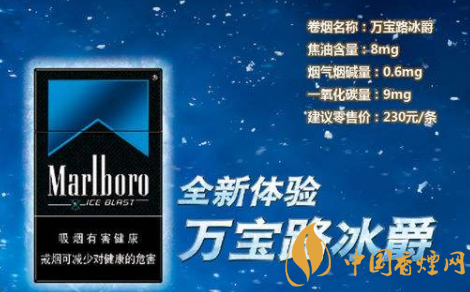 萬寶路(硬冰爵):金屬黑色包裝設(shè)計,綴以金屬藍(lán)色的萬寶路標(biāo)志;清涼的煙草味道,濾嘴加入了薄荷珠子。